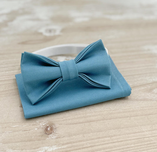Bermuda Bow tie & Suspenders | Leather Braces | Slate Blue Bow | Pocket Square | Ring Bearer Outfit | Boho Rustic Wedding