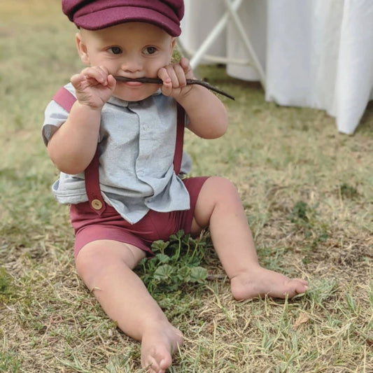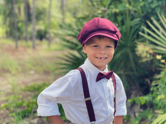 Tweed Newsboy Cap | Wine Suspenders | Sangria Bow Tie | Ring Bearer Outfit | Burgundy Cake Smash Outfit | Page Boy Cap | Fall Wedding Set