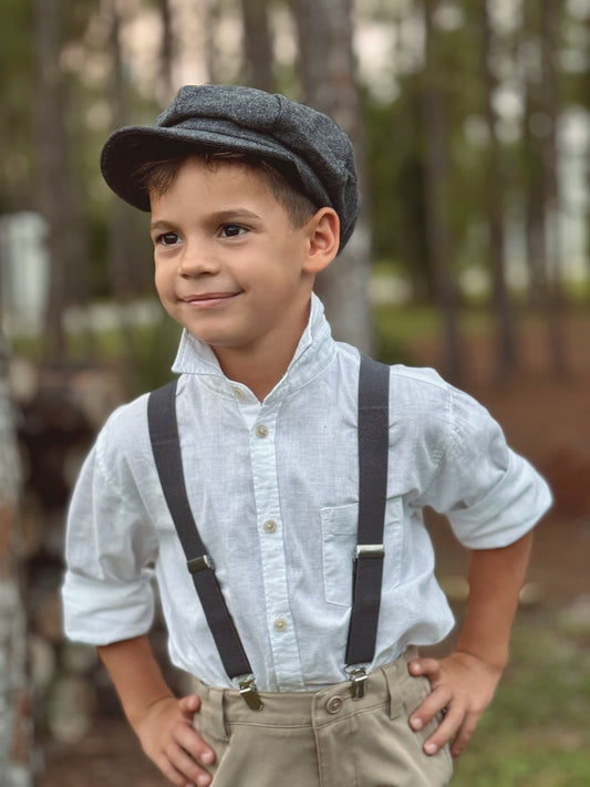 Newsboy Cap - Newborn to 10Y, Suspenders & Bow Tie, Gatsby Ivy Hat, Ring Bearer Outfit, Retro Page Boy Hat, Cake Smash, Fall Wedding Set