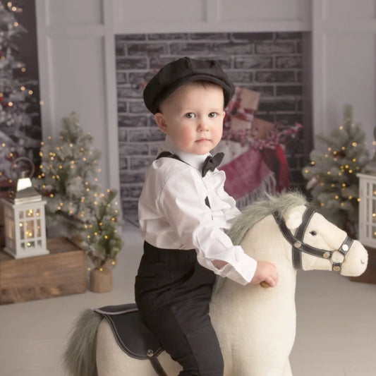 Black Applejack Newsboy Cap | Bow Tie | Suspenders | Wedding Ring Bearer Outfit | Holiday Costume Set for Newborn Boys