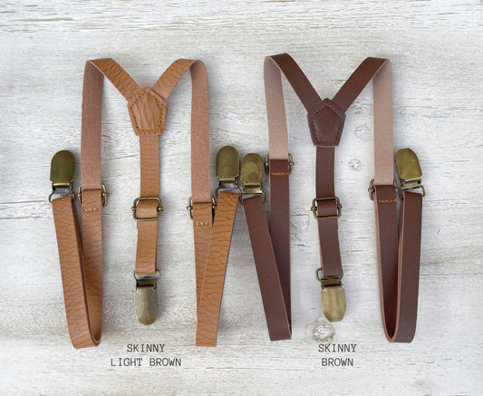 Rustic Brown Vegan Leather Wedding Suspenders for Groomsmen and Ring Bearer Outfit