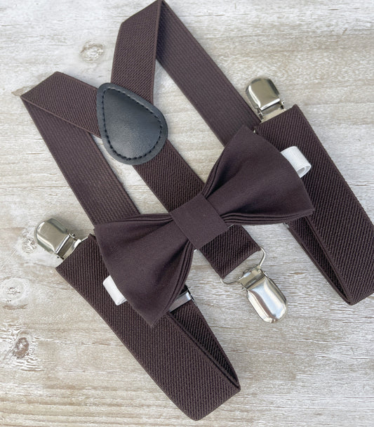 Coffee Brown Bow Tie and Suspenders Set for Men | Boys - Perfect Ring Bearer | Groomsmen | Wedding | Prom Formal Wear Outfit
