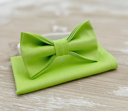 Pear Bow tie & Suspenders | Vegan Leather Suspenders | Lime Green Bowtie | Pocket Square | Ring Bearer Outfit | Boho Wedding Set