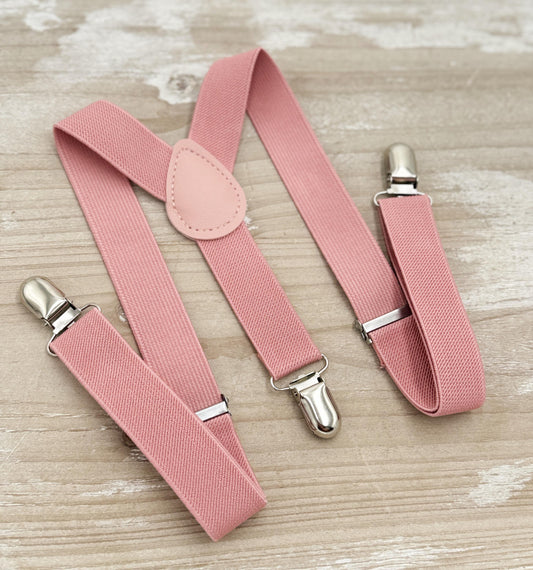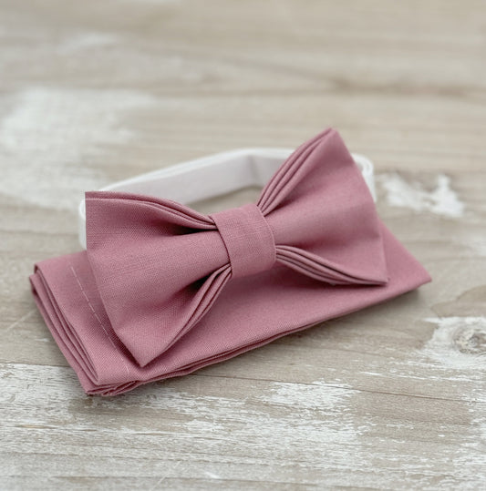 Dusty Rose Bow Tie & Suspenders – All Sizes for Men and Boys, Gray Braces, Pocket Square, Ring Bearer, Groomsman Gift, Boho Barn Wedding
