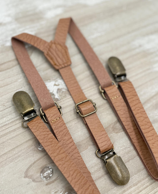 Champagne Rose Bow tie & Suspenders | Desert Coral Braces | Pocket Square | Ring Bearer Outfit | Boho Rustic Wedding