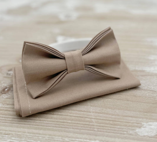 Light Taupe Bow tie & Suspenders, Pocket Square, Ring Bearer Outfit, Boho Rustic Wedding