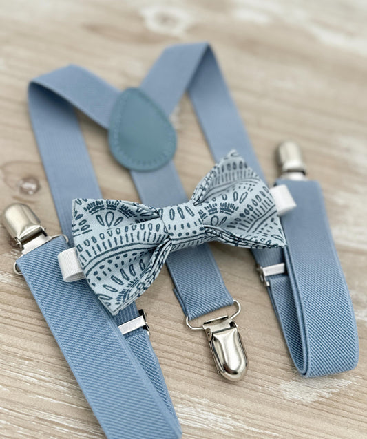 Boho Dusty Blue Bow tie & Suspenders | Pocket Square | Ring Bearer Outfit | Boho Rustic Wedding