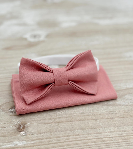 Desert Coral Bow Tie & Suspenders – All Sizes for Men and Boys, Pocket Square, Ring Bearer, Groomsman Gift, Boho Barn Wedding
