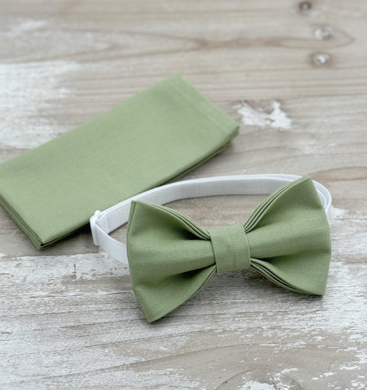 Pistachio Bow Tie & Suspenders – All Sizes for Men and Boys, Pocket Square, Moss Green Suspenders, Ring Bearer Gift, Rustic Wedding Set