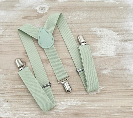 Dusty Sage Bow tie & Suspenders, Pocket Square, Ring Bearer Outfit, Boho Rustic Wedding