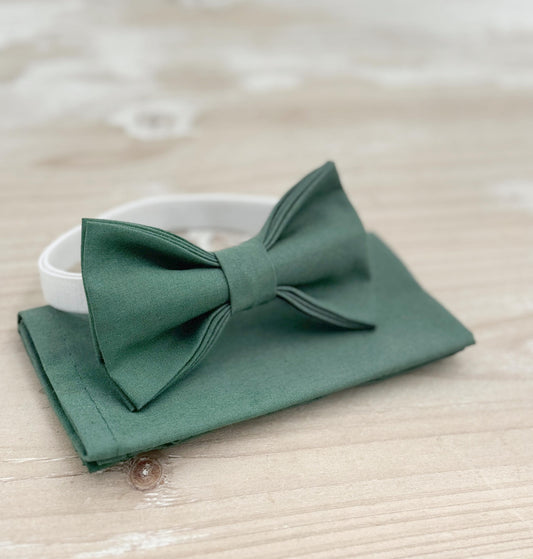 Dark Eucalyptus Bow Tie & Suspenders – All Sizes for Men and Boys, Pocket Square, Ring Bearer Gift , Rustic Wedding