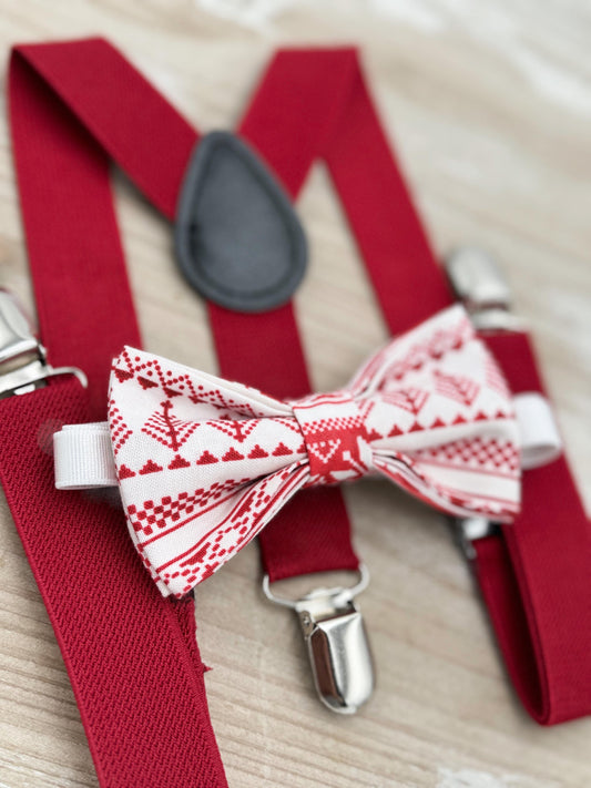 Nordic Bow tie & Suspenders | Scandinavian Holiday Bowtie | Costume Outfit | Christmas Bow Tie | Photo Prop Outfit