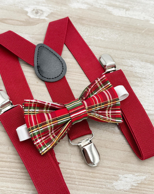 Tartan Bow tie & Suspenders | Holiday Bowtie | Costume Outfit | Christmas Bow Tie | Photo Prop Outfit
