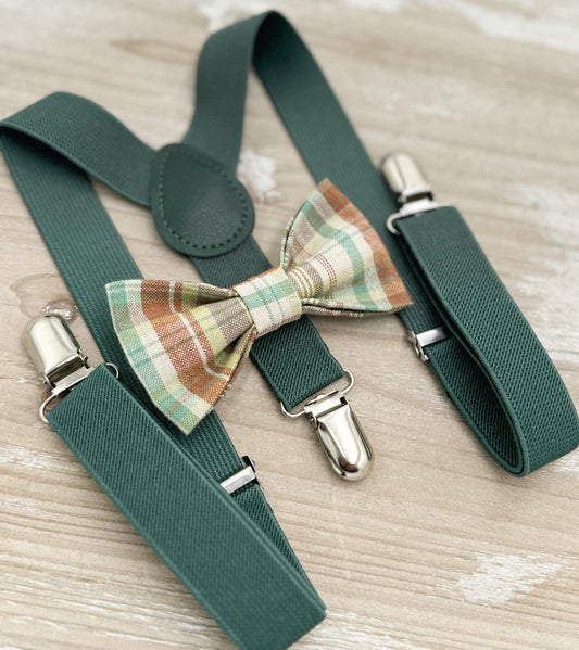 Pear Bow tie & Suspenders | Champagne Tan Braces | Lime Green Bowtie | Pocket Square | Ring Bearer Outfit | Boho Rustic Wedding