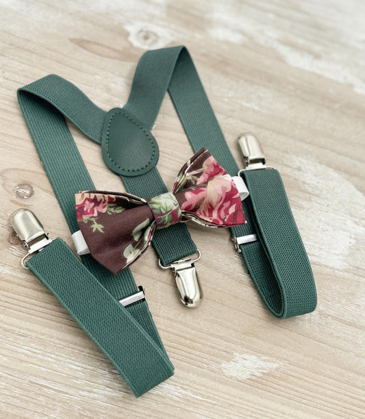 Floral Bow tie & Suspenders | Eucalyptus Braces | Cottage Chic Rose Bow | Ring Bearer Outfit | Boho Rustic Wedding