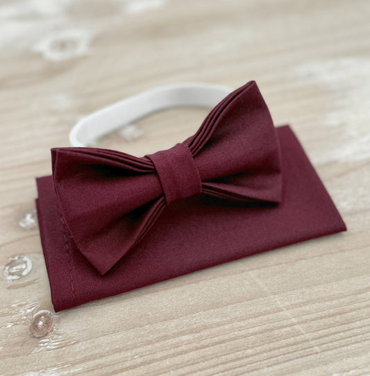 Men's Dark Sangria Bow Tie | Wine Suspenders | Pocket Square Set - Perfect Groomsmen Gift for Wedding Groom Outfit