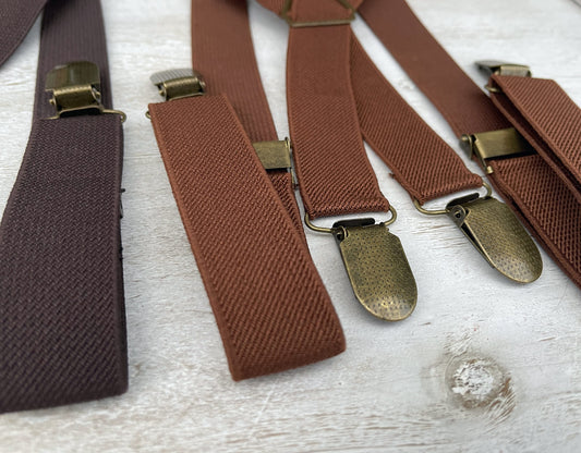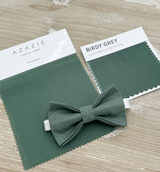 Eucalyptus Bow Tie | Brown X-Back Suspenders | Men's Pocket Square - Perfect Groomsmen Wedding Outfit and Ring Bearer Gift