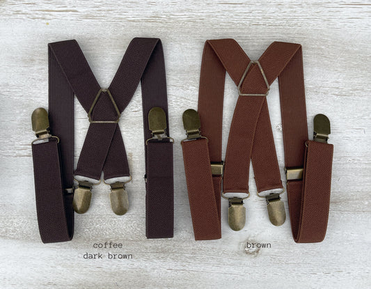 Forest Green Bow Tie and Coffee Brown X-Back Suspenders Set - Men's Bow Tie | Boy's Ring Bearer Gift | Groomsmen Gift | Wedding Groom Outfit