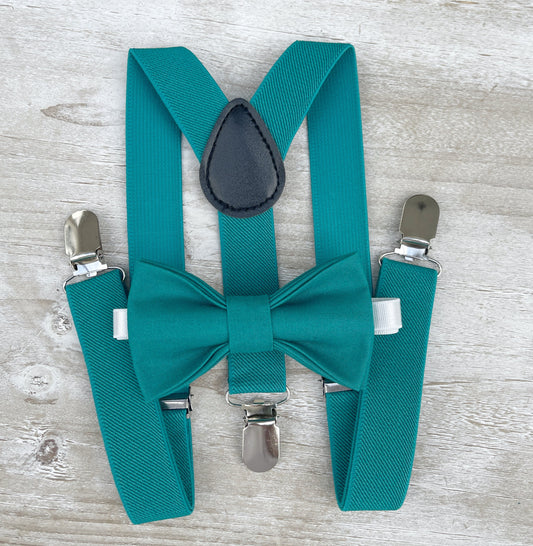 Teal Bow Tie and Suspenders Set for Men and Boys | Wedding Accessories and Ring Bearer Gift - Groomsmen Outfit and Cake Smash Attire.