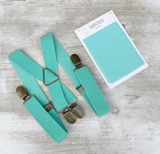 Turquoise Wedding Suspenders for Men | Dark Mint Groomsmen Suspenders | X-Back Style for Boys - Ring Bearer and Toddler Sizes Available