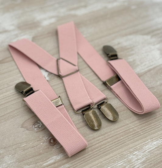 Blush Bow tie & Suspenders, Dusty Pink X - Back Braces, Petal Bow Tie, Blushing Bow, Pocket Square, Ring Bearer Outfit, Boho Wedding