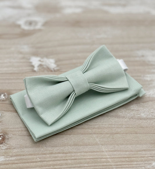 Dusty Sage Bow tie & Gray Suspenders | Agave Bow Tie | Pocket Square | Ring Bearer Outfit | Boho Wedding | Groomsman Gift