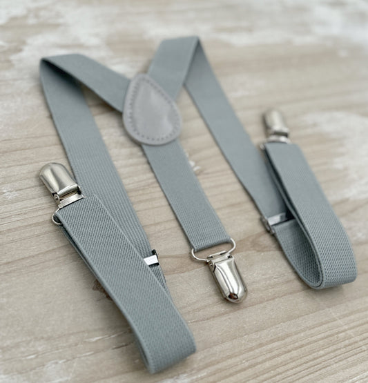 Dusty Sage Bow tie & Suspenders, Gray Braces, Pocket Square, Ring Bearer Outfit, Boho Wedding Set