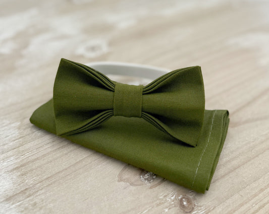 Olive Bow tie & Suspenders, Pocket Square, Dark Green Bowtie, Ring Bearer Outfit, Boho Rustic Wedding