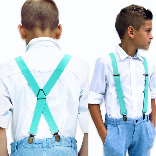 Turquoise Wedding Suspenders for Men | Dark Mint Groomsmen Suspenders | X-Back Style for Boys - Ring Bearer and Toddler Sizes Available
