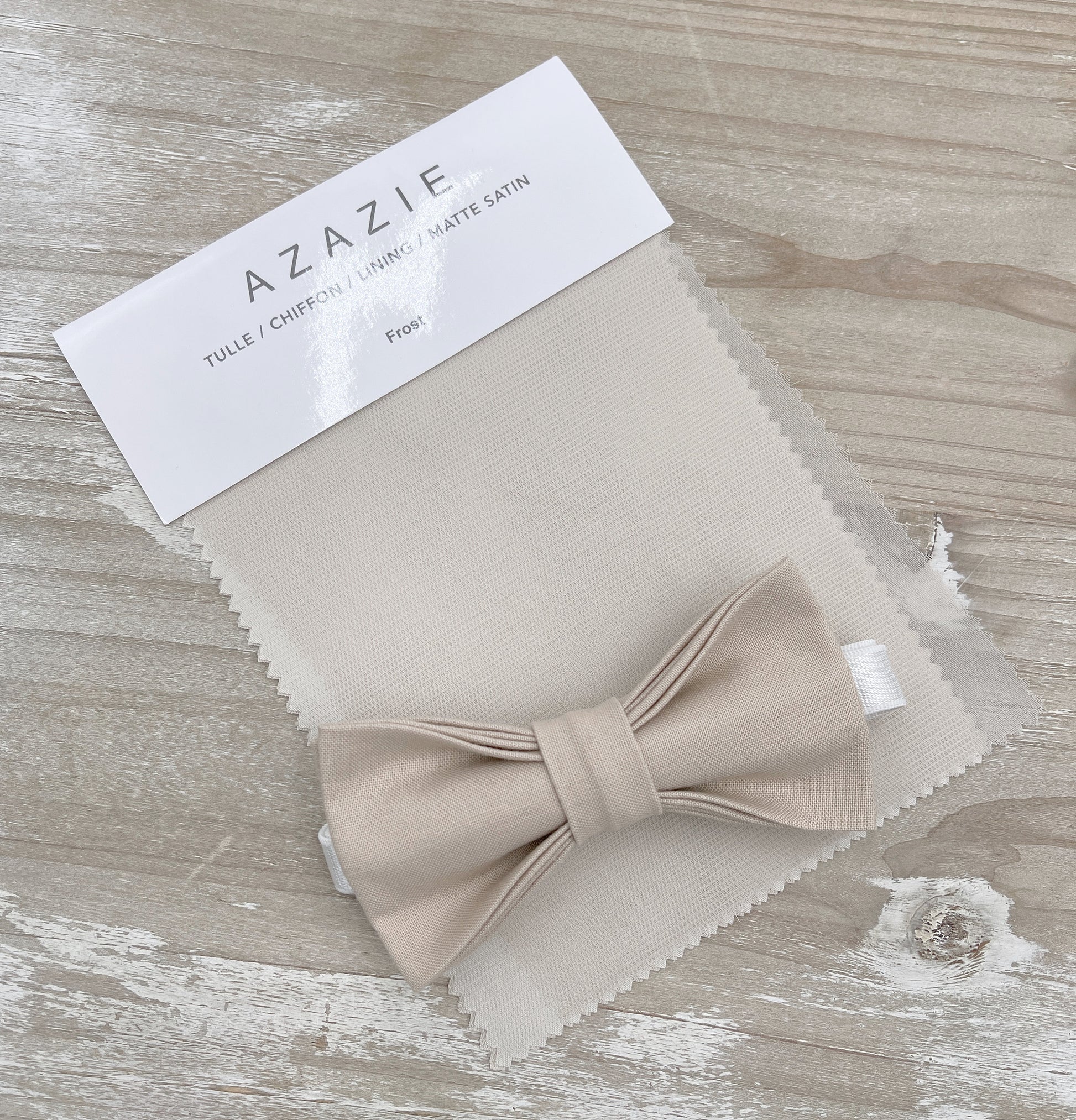 Elevate your style with our handcrafted, chic bow ties, ideal for weddings, parties, birthdays, and proms. They make a distinguished choice for groomsmen and ring bearers, adding a sophisticated touch to any special event. Choose from a variety of colors including WHITE, ALABASTER/ECRU, CHAMPAGNE, BISCOTTI/FROST, NUDE, GOLD, TAUPE, LIGHT TAUPE, and COFFEE. Free FABRIC SWATCHES are available - just contact us about this option!